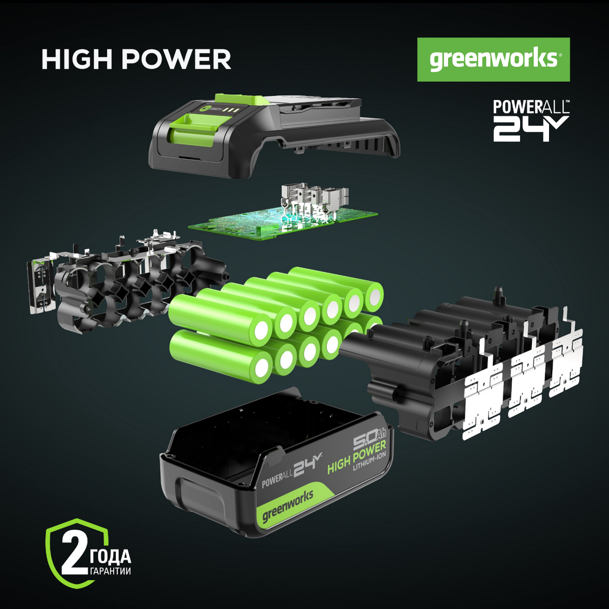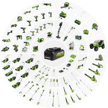 Greenworks самостоятельно разрабатывает и производит аккумуляторные батареи для всех своих аккумуляторных платформ.