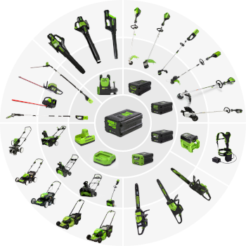 Greenworks самостоятельно разрабатывает и производит аккумуляторные батареи для всех своих аккумуляторных платформ.