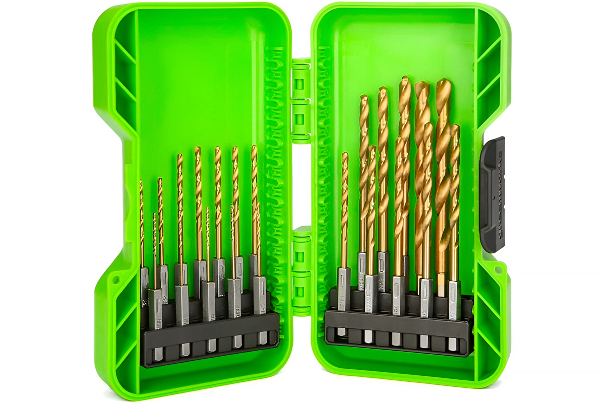 Greenworks 2943907 набор свёрл по металлу 1,5-8,0мм HSS-TiN, HEX 1/4" (22 предмета)