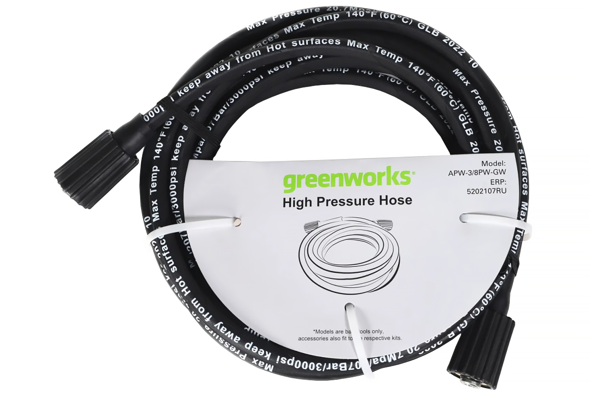5202107 шланг 7.6 м для мойки высокого давления max 250 бар Greenworks