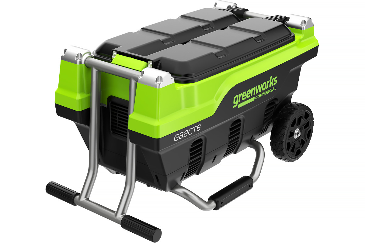 Складная ручка и колеса облегчают перемещение нескольких аккумуляторов к местам зарядки и проведения работ.