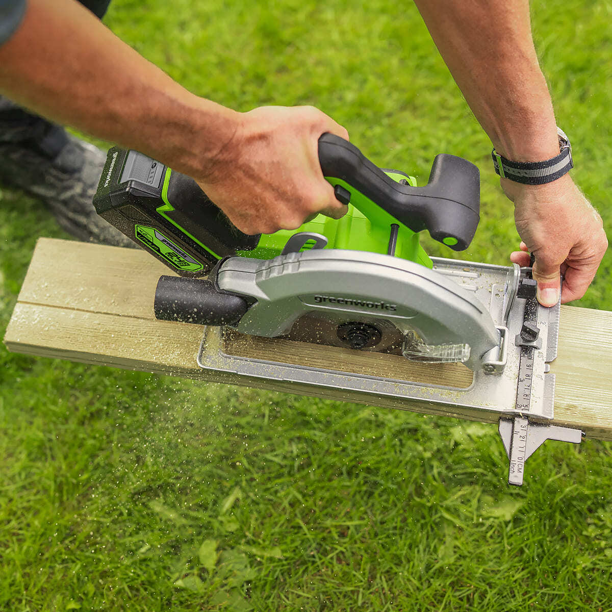 Классическое правое расположение пильного диска обеспечивает высокий уровень безопасности.