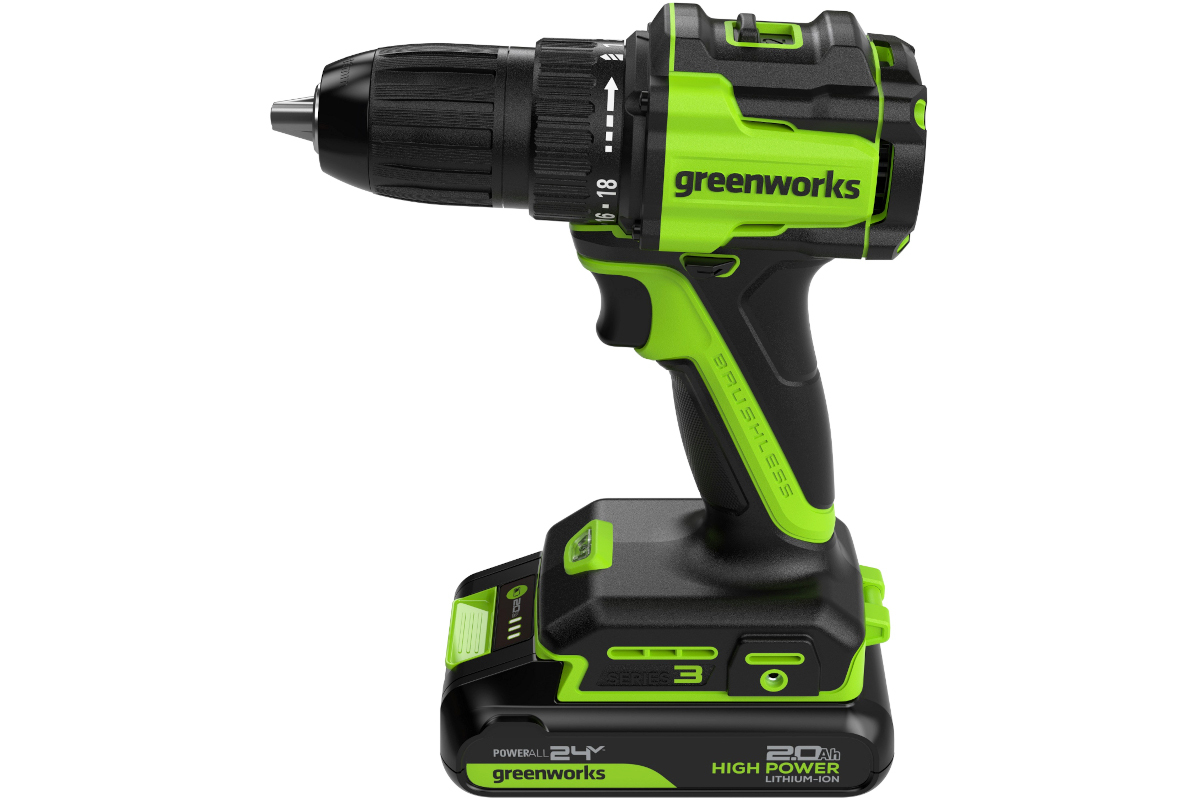 Greenworks 3708307CUA дрель-шуруповерт аккумуляторная DD345, 27/45Нм, BL-motor 24V