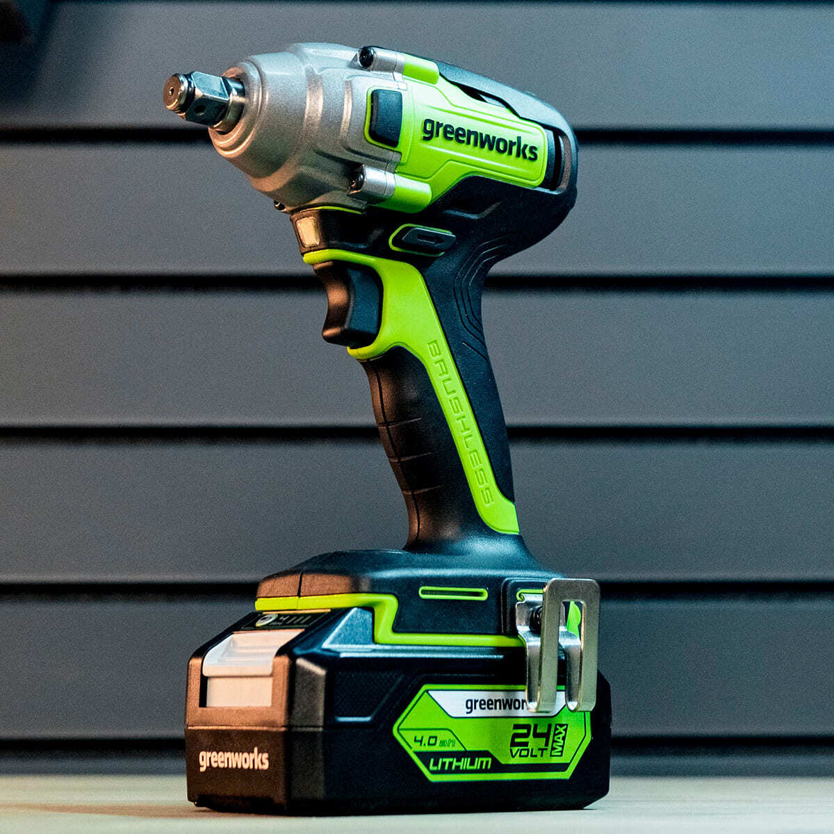 Гайковерт отличается надежностью благодаря ударному механизму тангенциального типа и прочному металлическому корпусу редуктора.