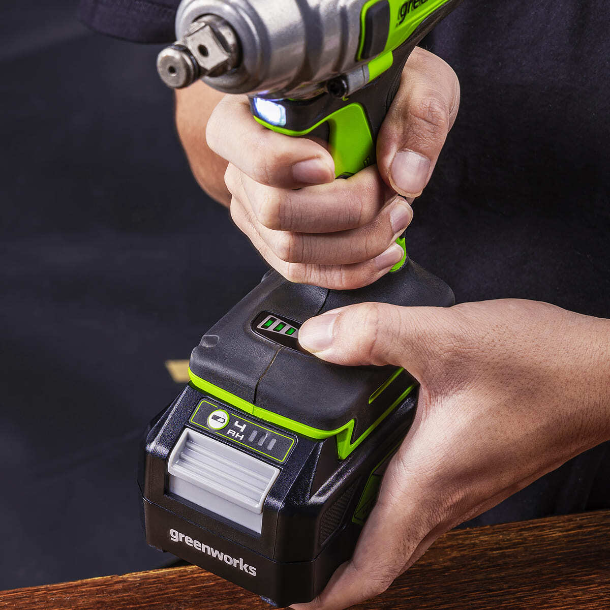 Три режима работы с настройками мощности (150, 300 и 400 Нм) позволяют гибко подстраиваться под разные задачи, управляя инструментом одной кнопкой с индикатором.