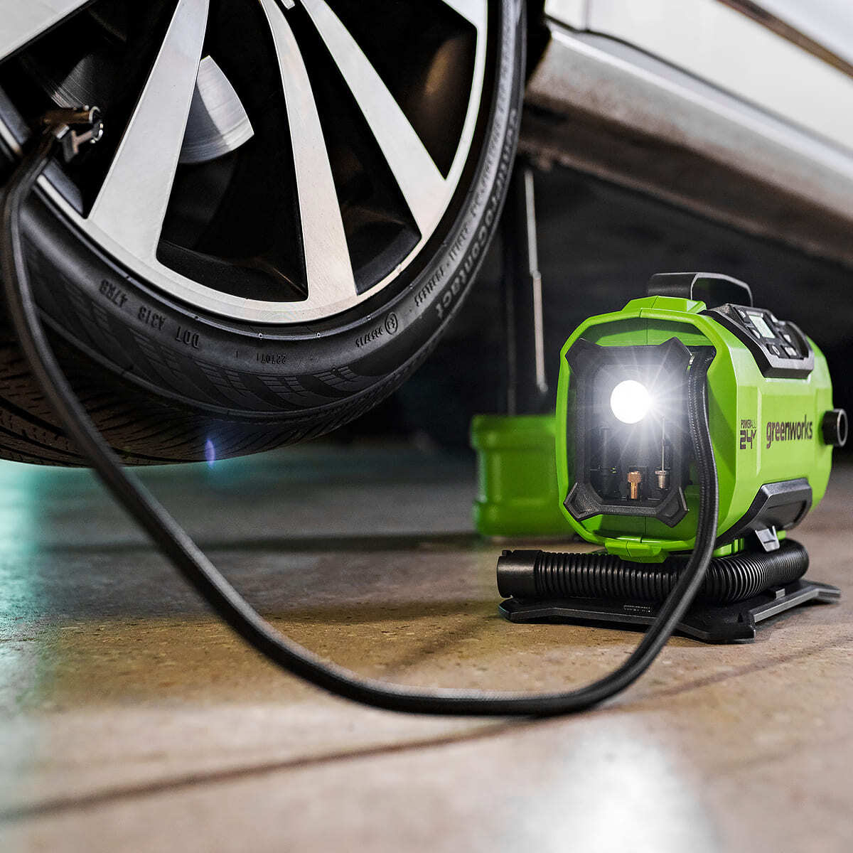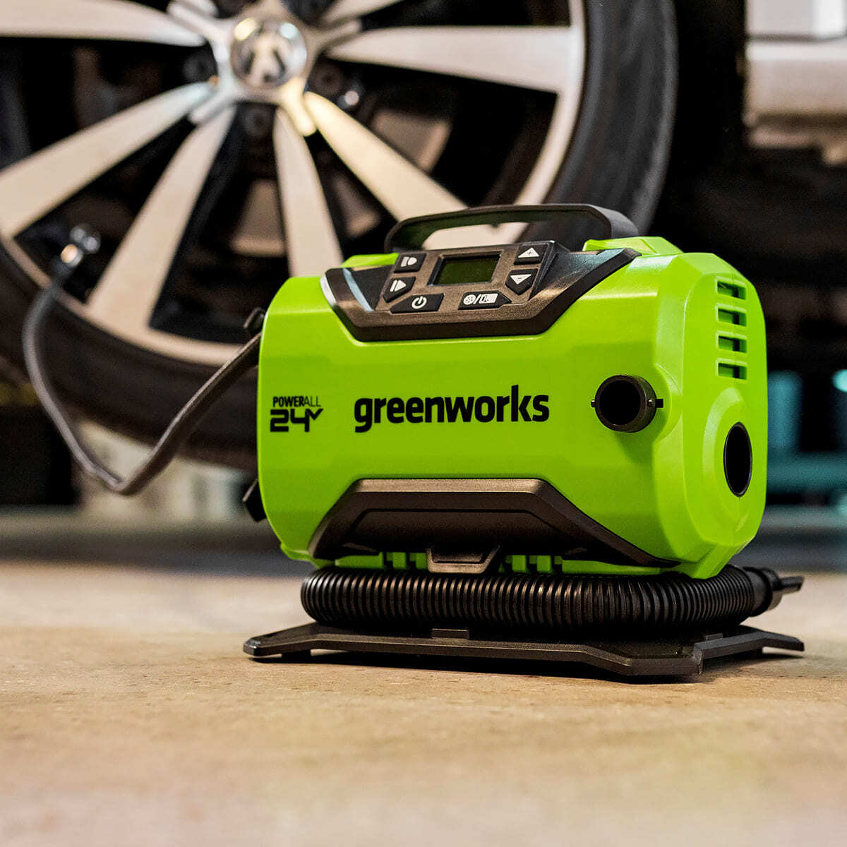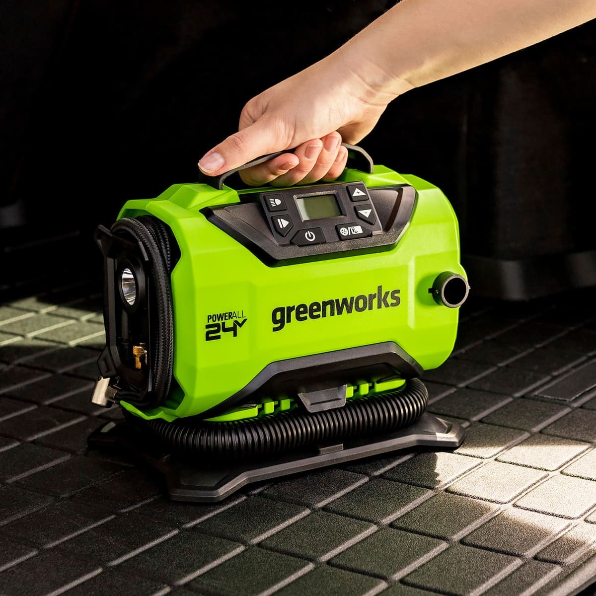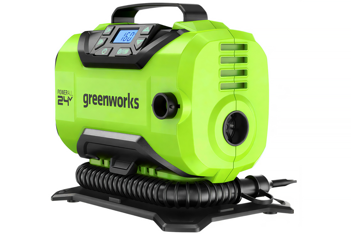 Greenworks 3400807 компрессор автомобильный аккумуляторный ACG301 24V + сеть 12V