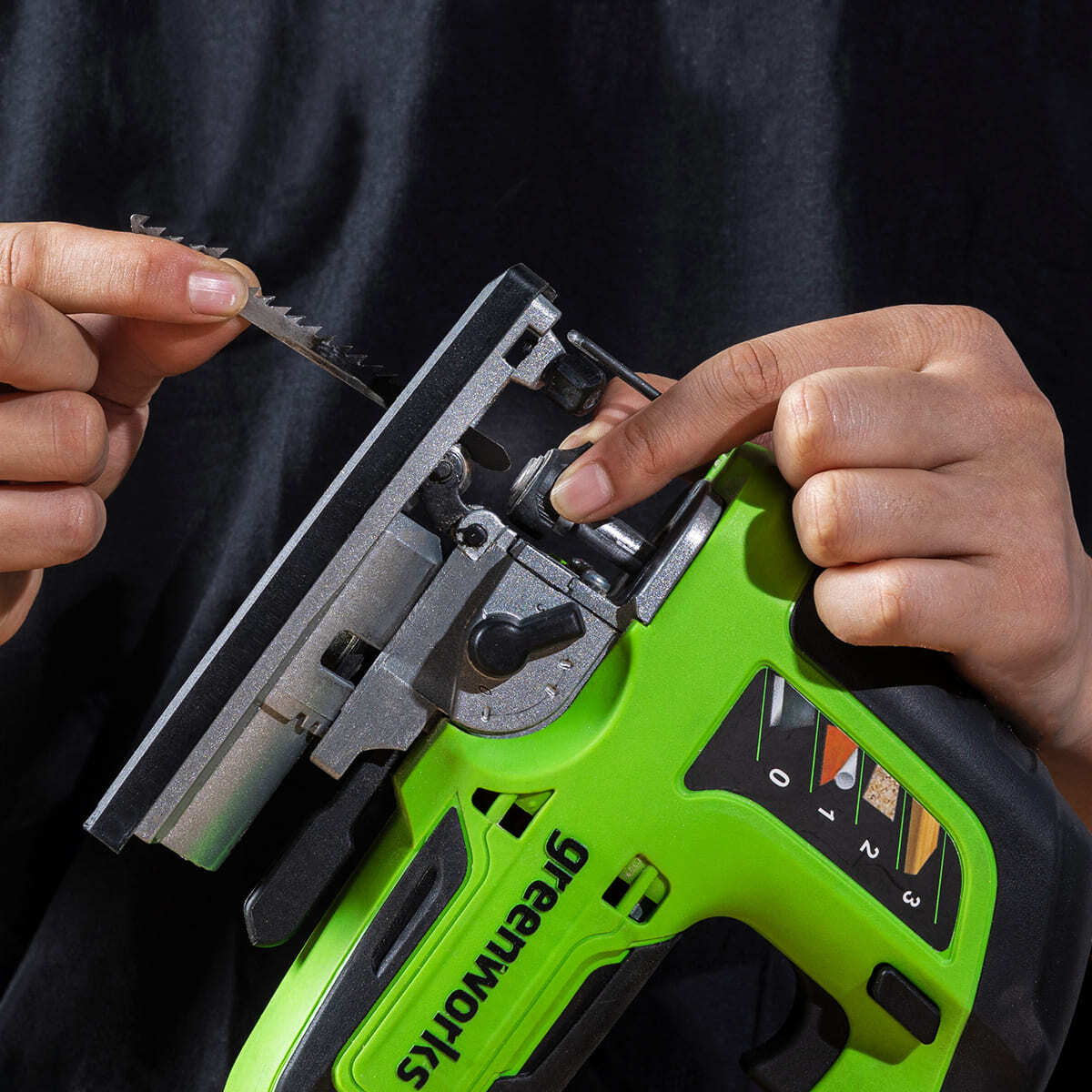 • Функция выталкивания полотна упрощает замену пилок, делая процесс быстрым, безопасным и не требующим инструментов.