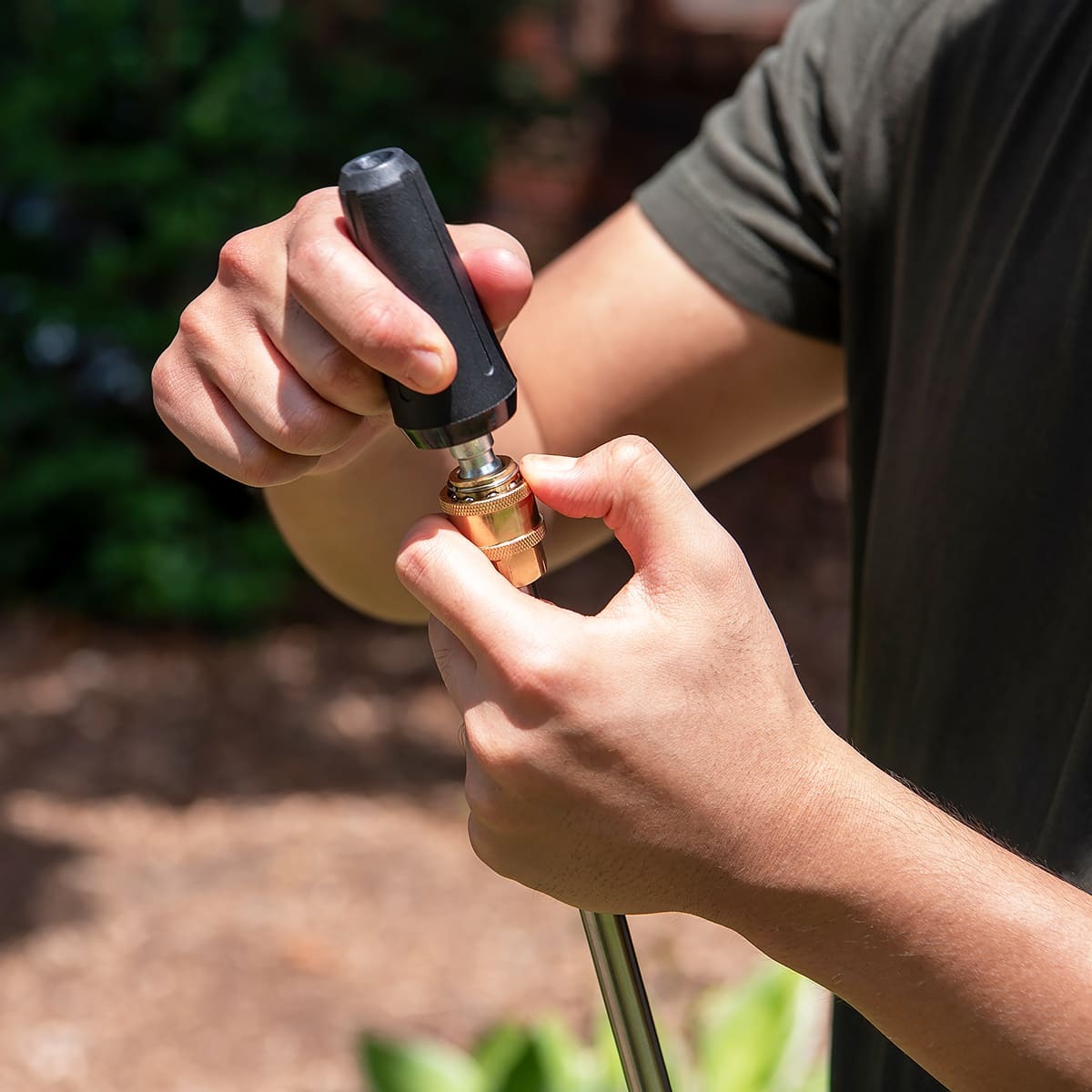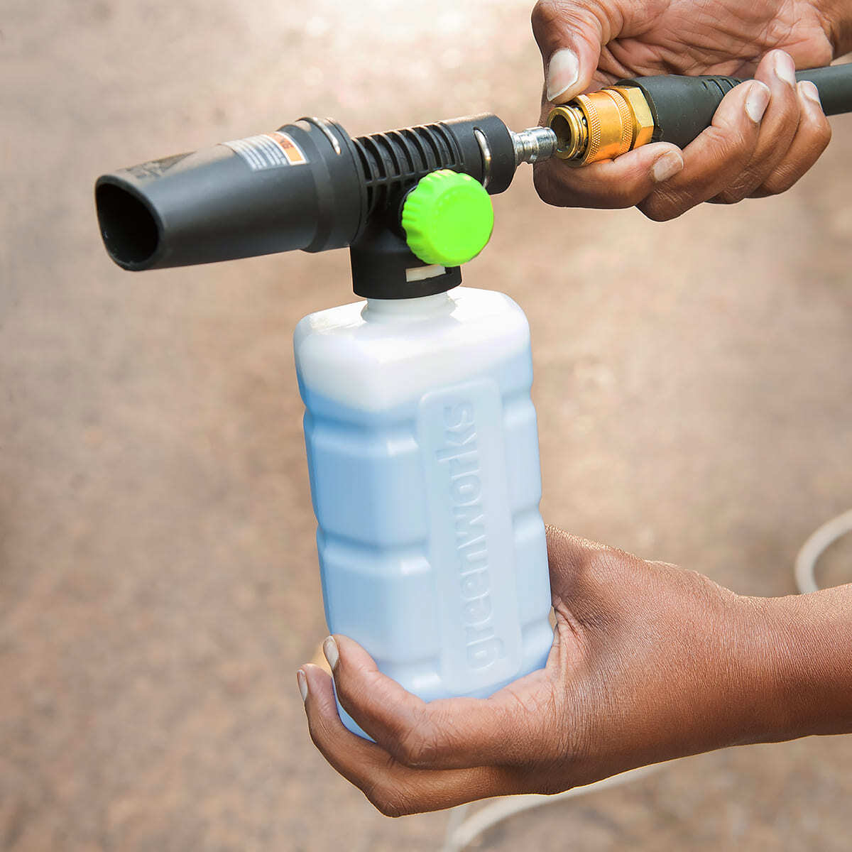 Набор из 4 форсунок с различными углами распыления: -15 градусов – для удаления грязи, плесени, краски, -25 градусов – универсальная для сметания грязи с дорожек, мытья заборов, -40 градусов – для деликатной мойки, -65 градусов – форсунка для моющего средства.