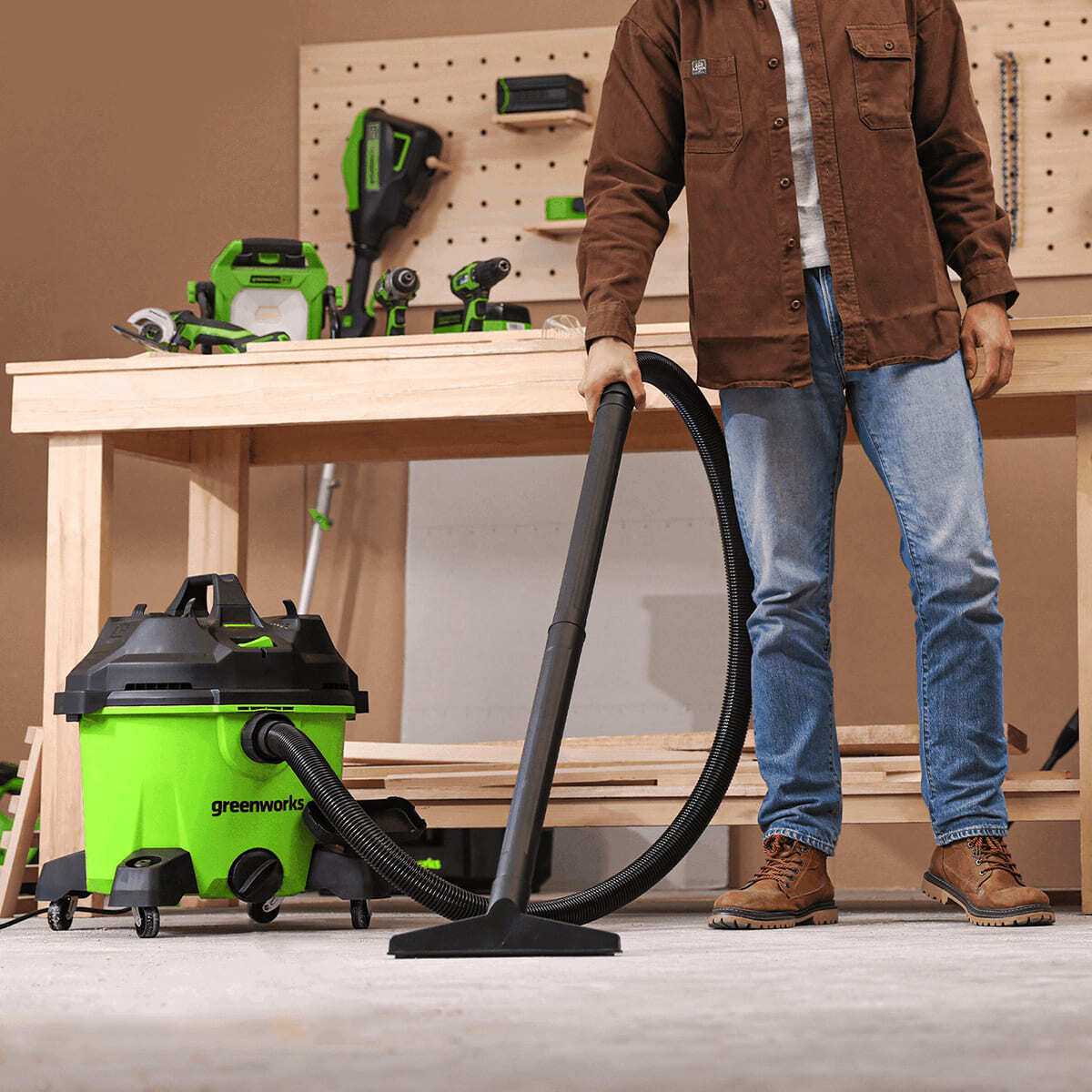 Greenworks 4701207 пылесос строительный сетевой G120WDV, 1200Вт