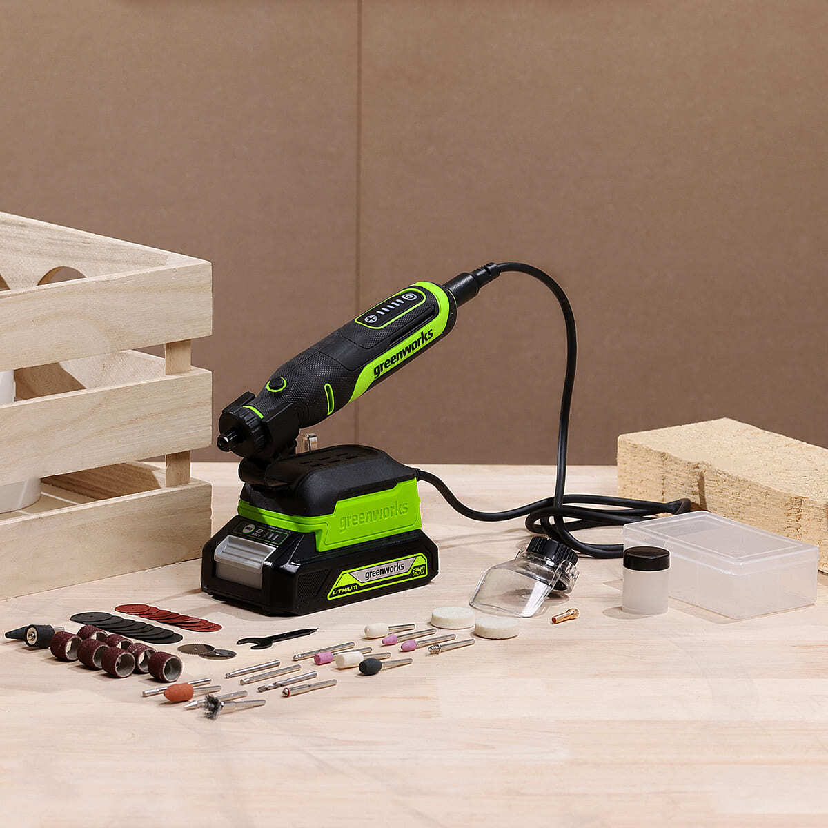 База гравёра G24RT оснащена специальным местом для хранения принадлежностей.