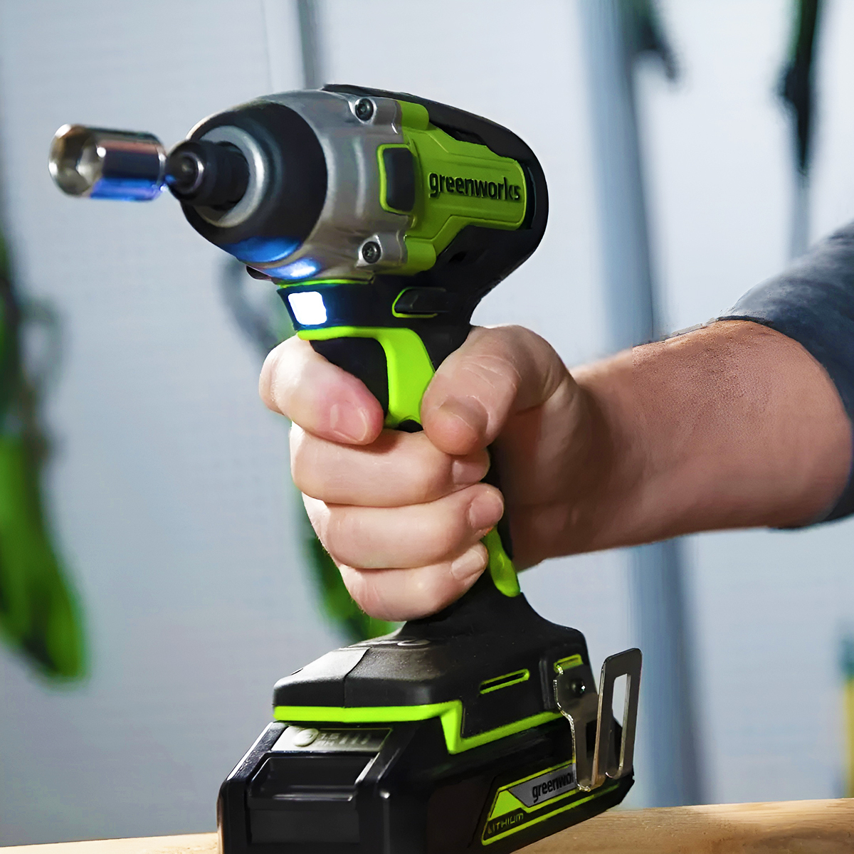 Greenworks 3802807CUA шуруповерт ударный аккумуляторный GD24ID3, 300Нм, HEX 1/4'', BL-motor 24V