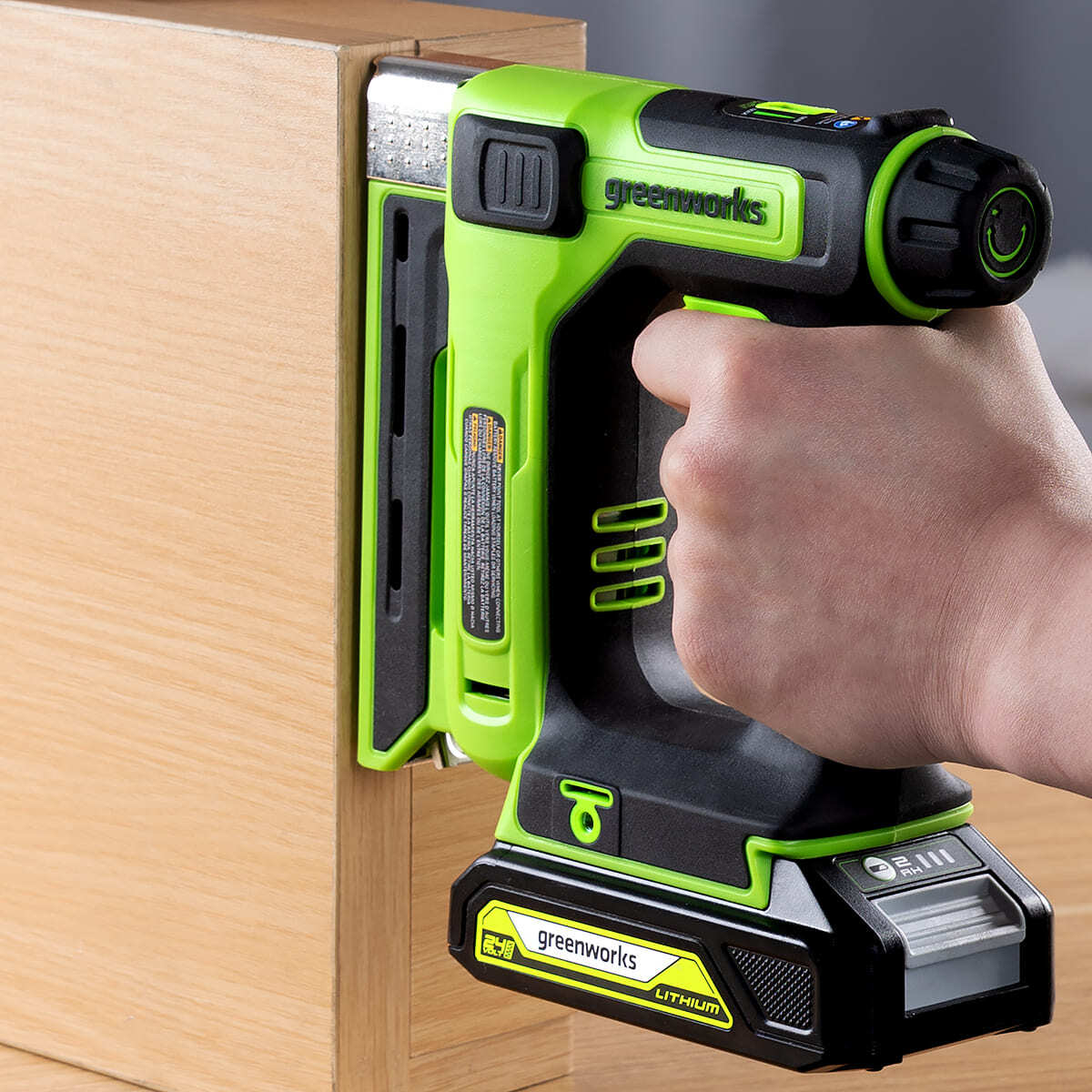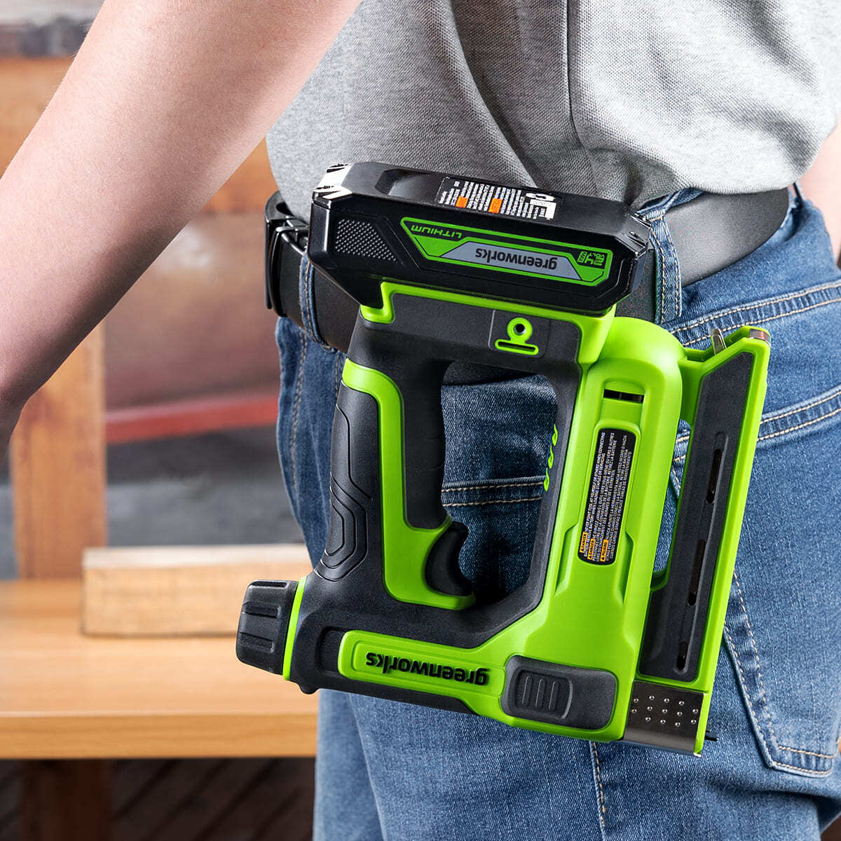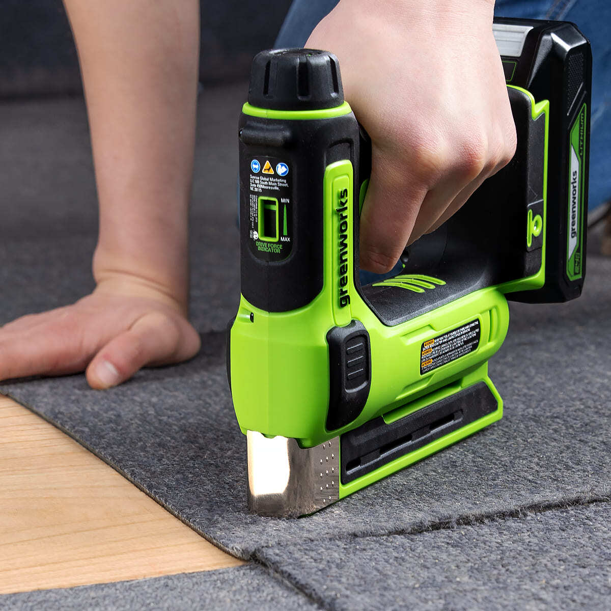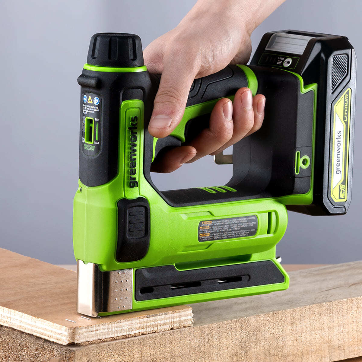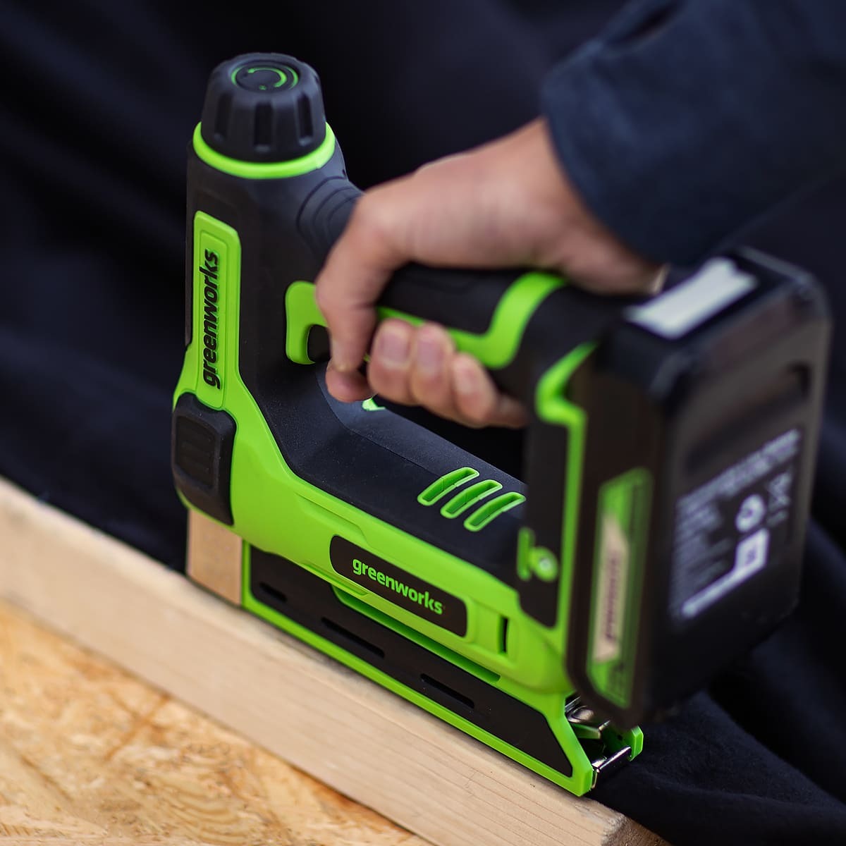 Greenworks 3400107 степлер аккумуляторный G24CS10, скобы Т53, гвозди Т47, 24V