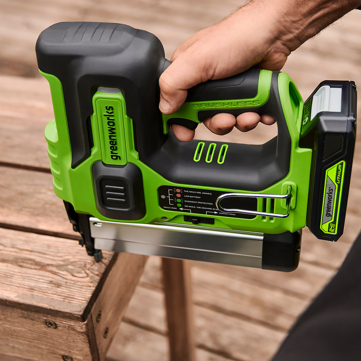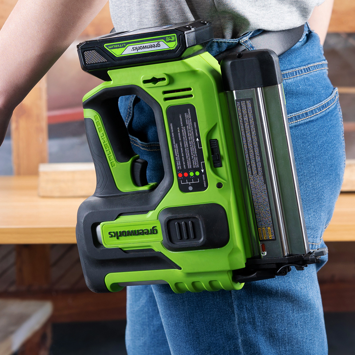 Greenworks 3400707 гвоздезабивной пистолет аккумуляторный GD24BN, BL-motor 24V