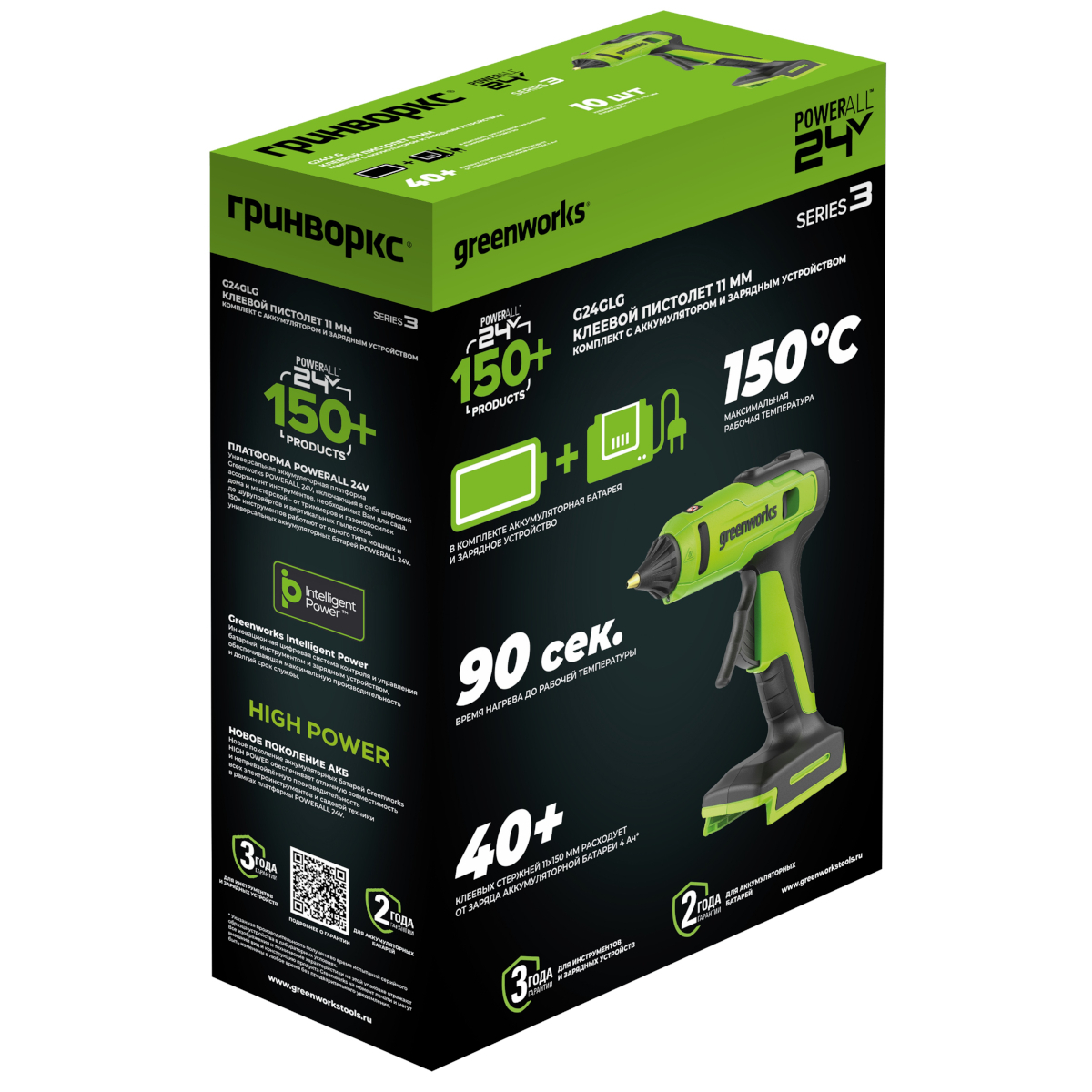 Greenworks 3502207CUA термоклеевой пистолет 11мм аккумуляторный G24GLG, 24V