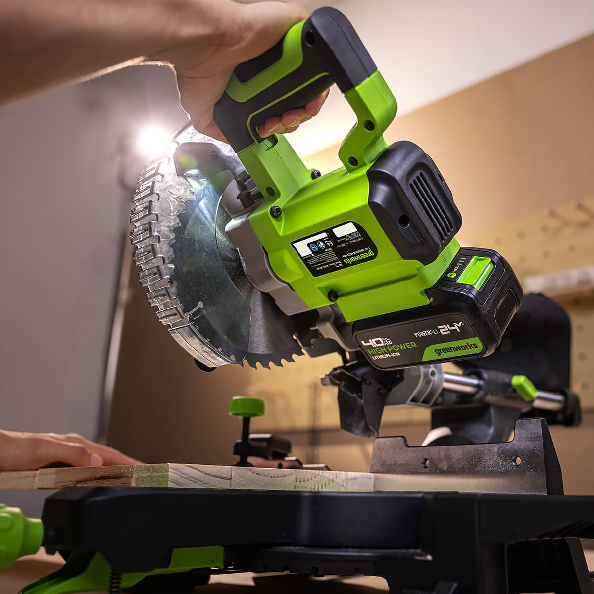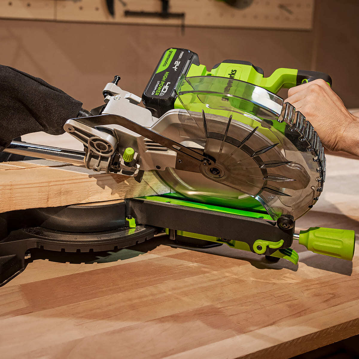 Greenworks 1501707UH пила торцовочная аккумуляторная GD24MS216, рез 65х310мм, BL-motor 24V
