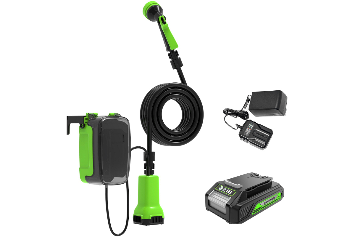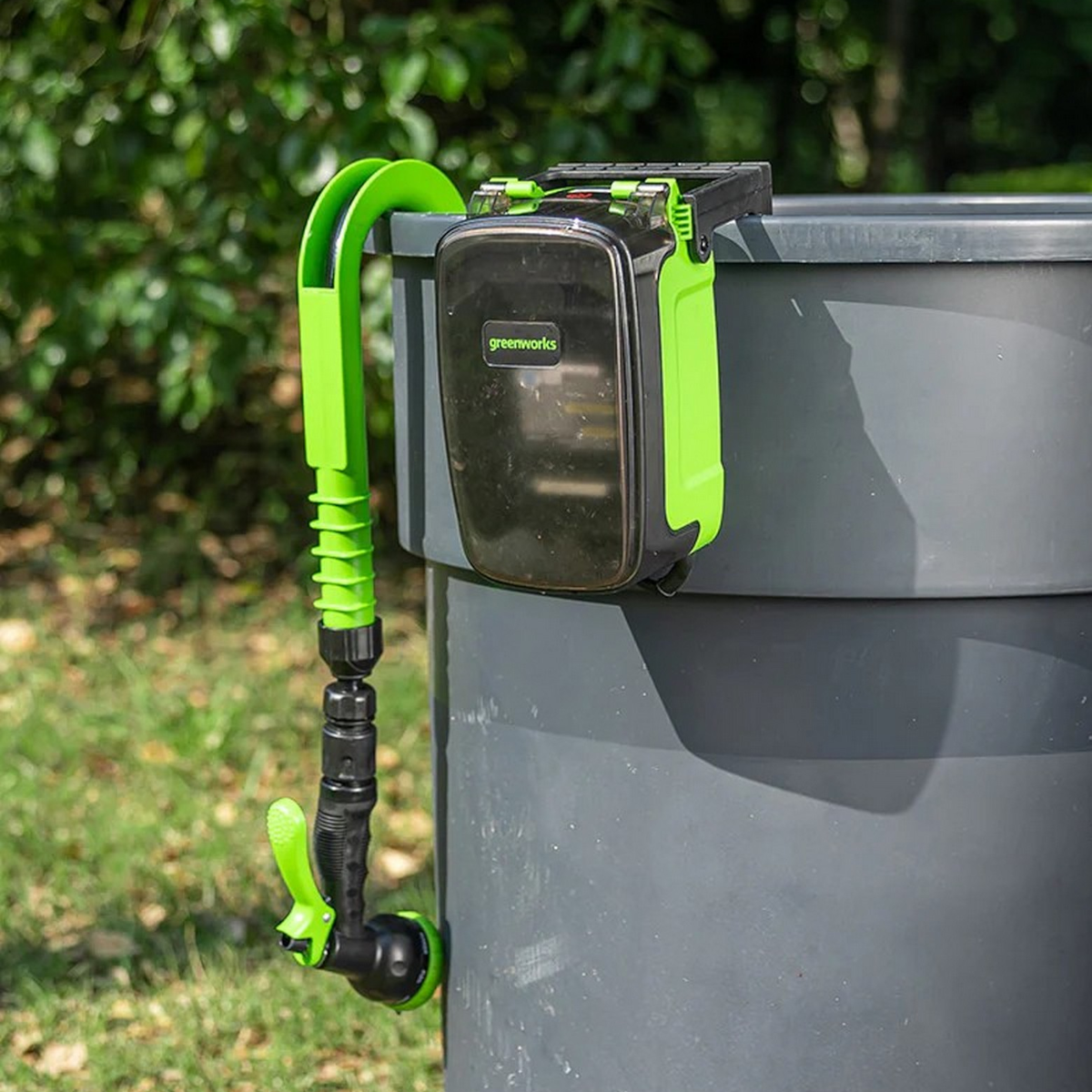 Блок аккумулятора и шланг надежно фиксируются на бортах бочки при помощи специального крюка.