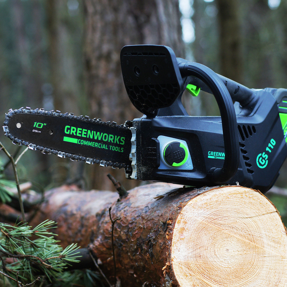 Компактная цепная пила оснащена инновационным бесщеточным двигателем DigiPro™ мощностью 900 Вт с внешним ротором для повышенной производительности и долговечности.
