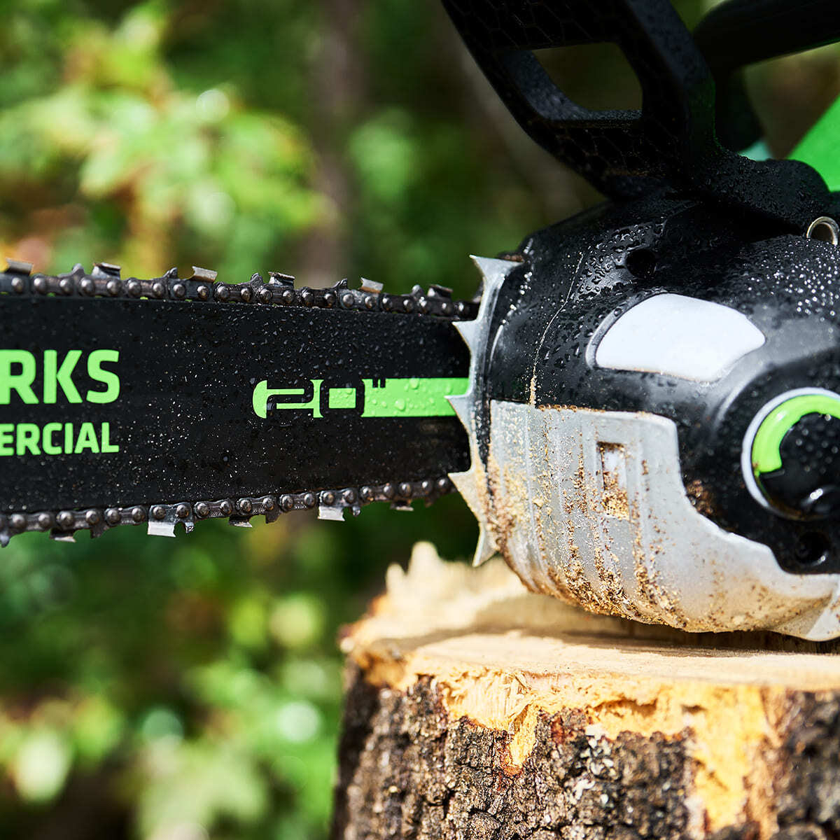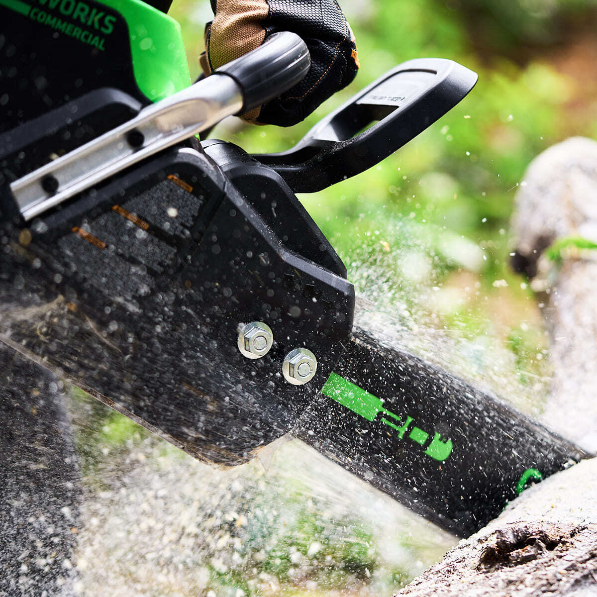 Мощность 3,4 кВт (4,6 л.с.) ставит эту модель в один ряд с профессиональными бензопилами.