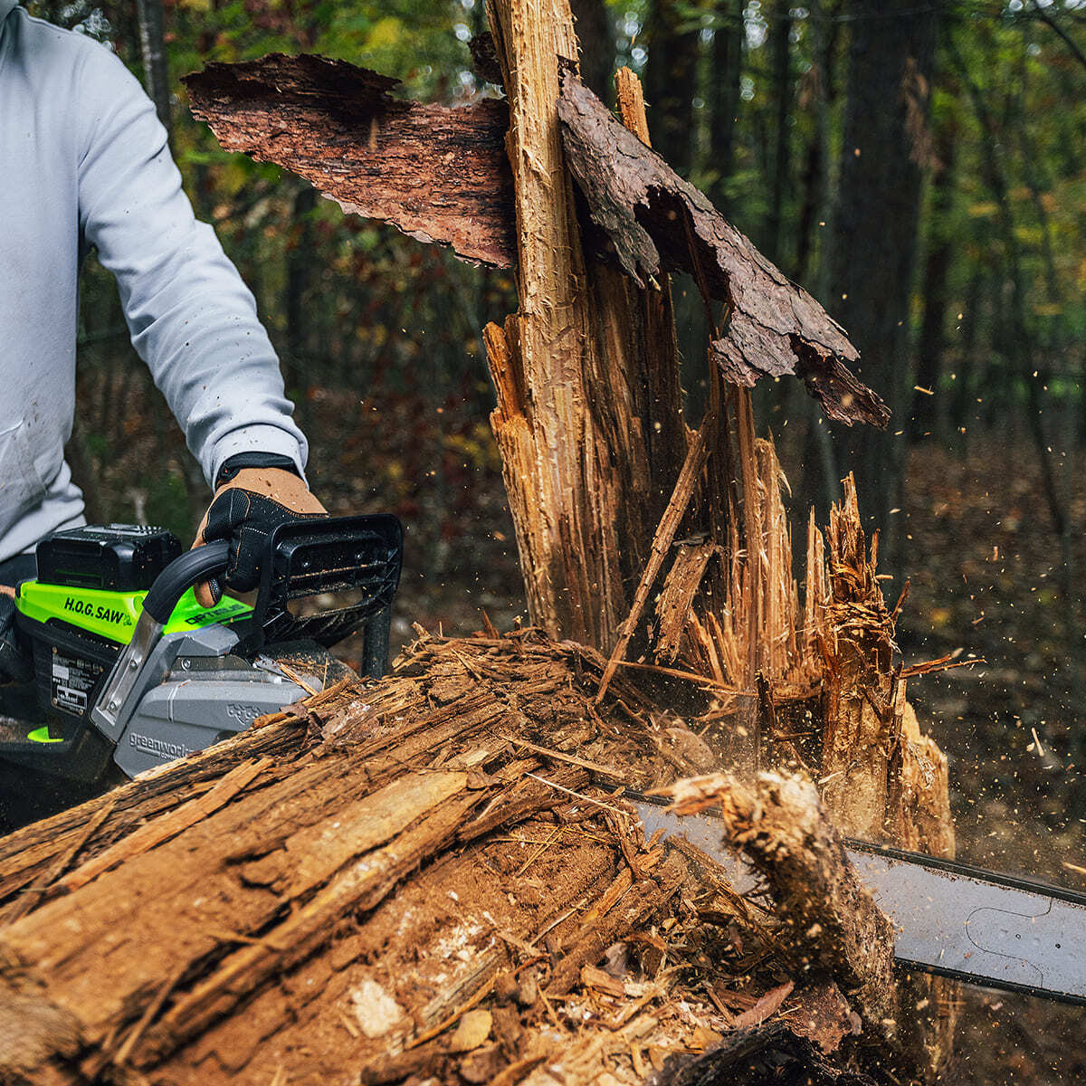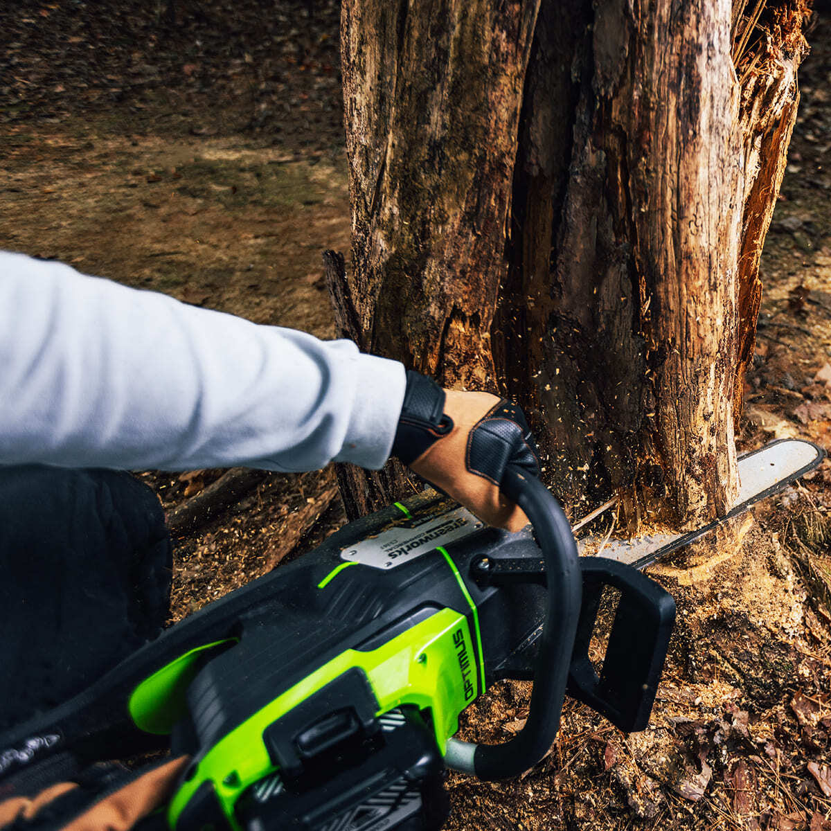 • С мощностью 6,8 л.с. эта пила сопоставима с профессиональными бензоинструментами (80 см³), превосходя их по удобству.
