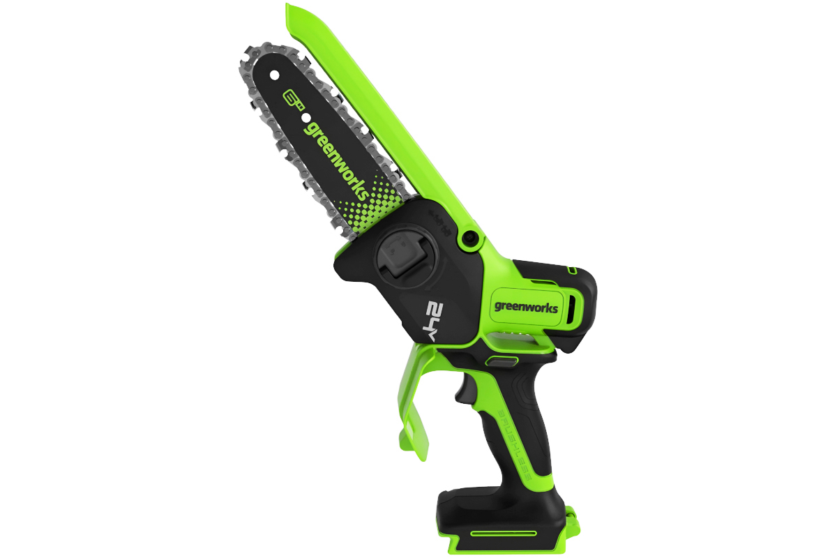 Цепная мини-пила оснащена кованой пильной шиной и высокоэффективной цепью, обеспечивающей до 137 резов хвойного бруса 50×50 мм на аккумуляторе 2 Ач и до 324 резов на 4 Ач.