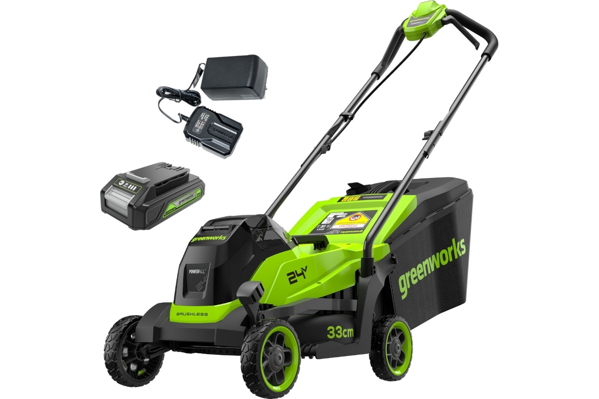 Greenworks 2520607UB газонокосилка аккумуляторная GD24LM331, 33см, BL-motor 24V