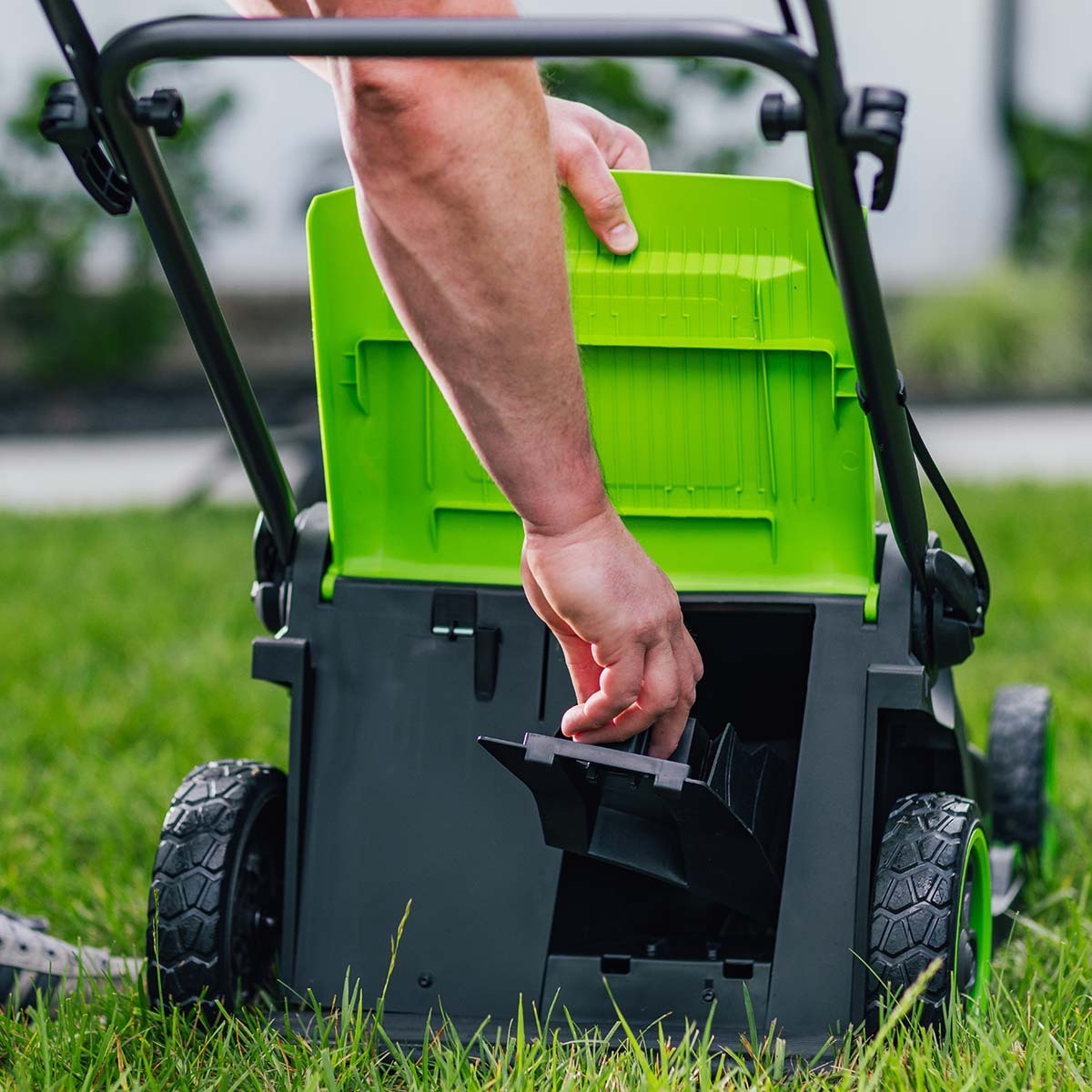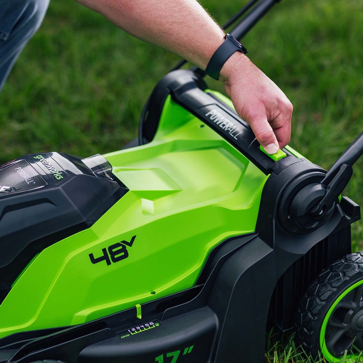 • Газонокосилка запускается одним нажатием кнопки – никаких рывков шнура или сложного старта.