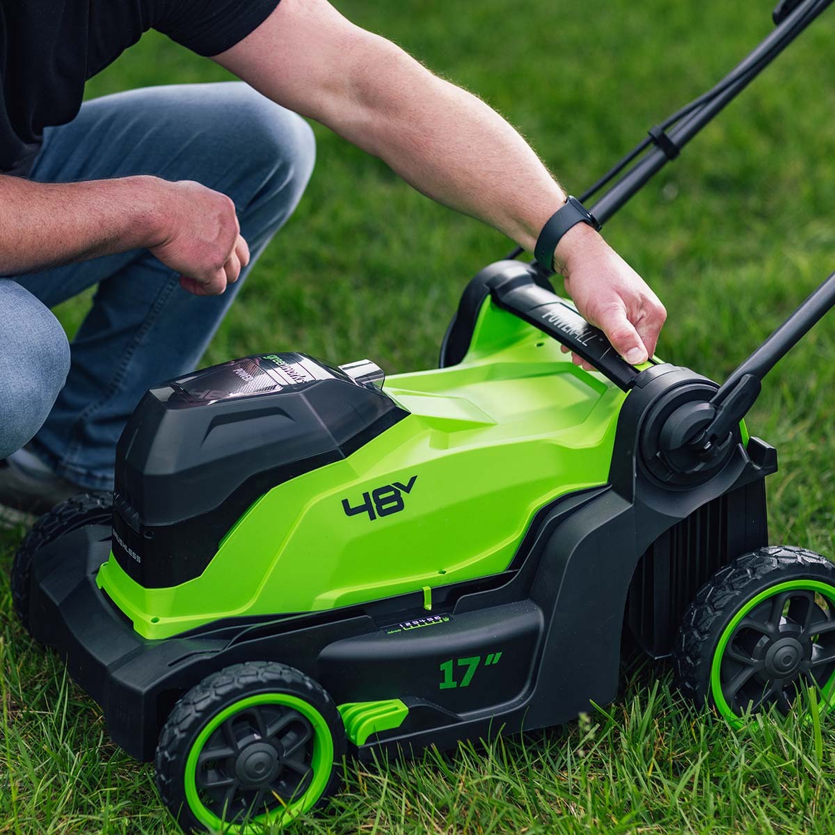 Greenworks 2520907UD газонокосилка аккумуляторная GD24X2LM411, 41см, BL-motor 48V (24V+24V)