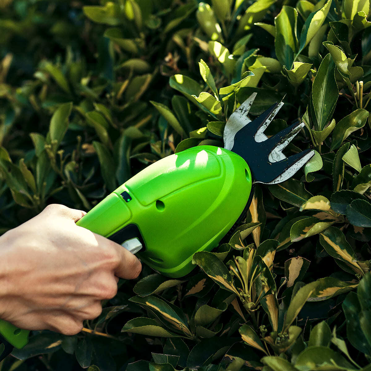 • Садовые ножницы оснащены лезвием с алмазной заточкой для филигранной стрижки кустов и отдельным ножом шириной 8 см для подравнивания травы.