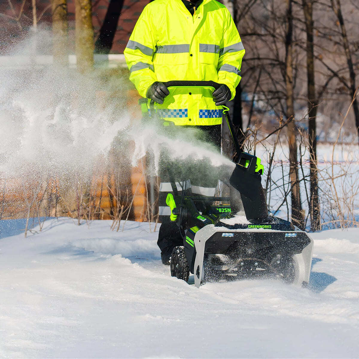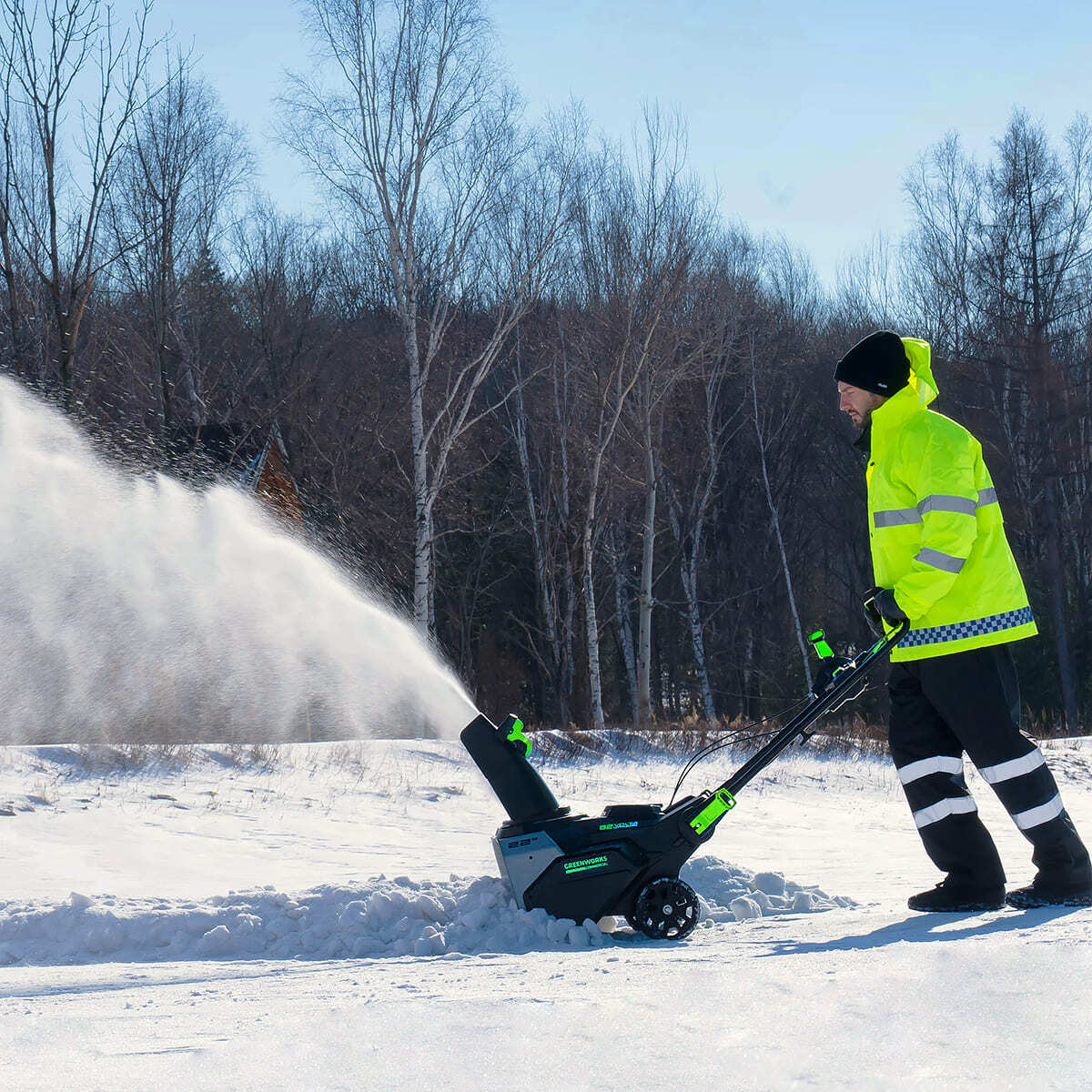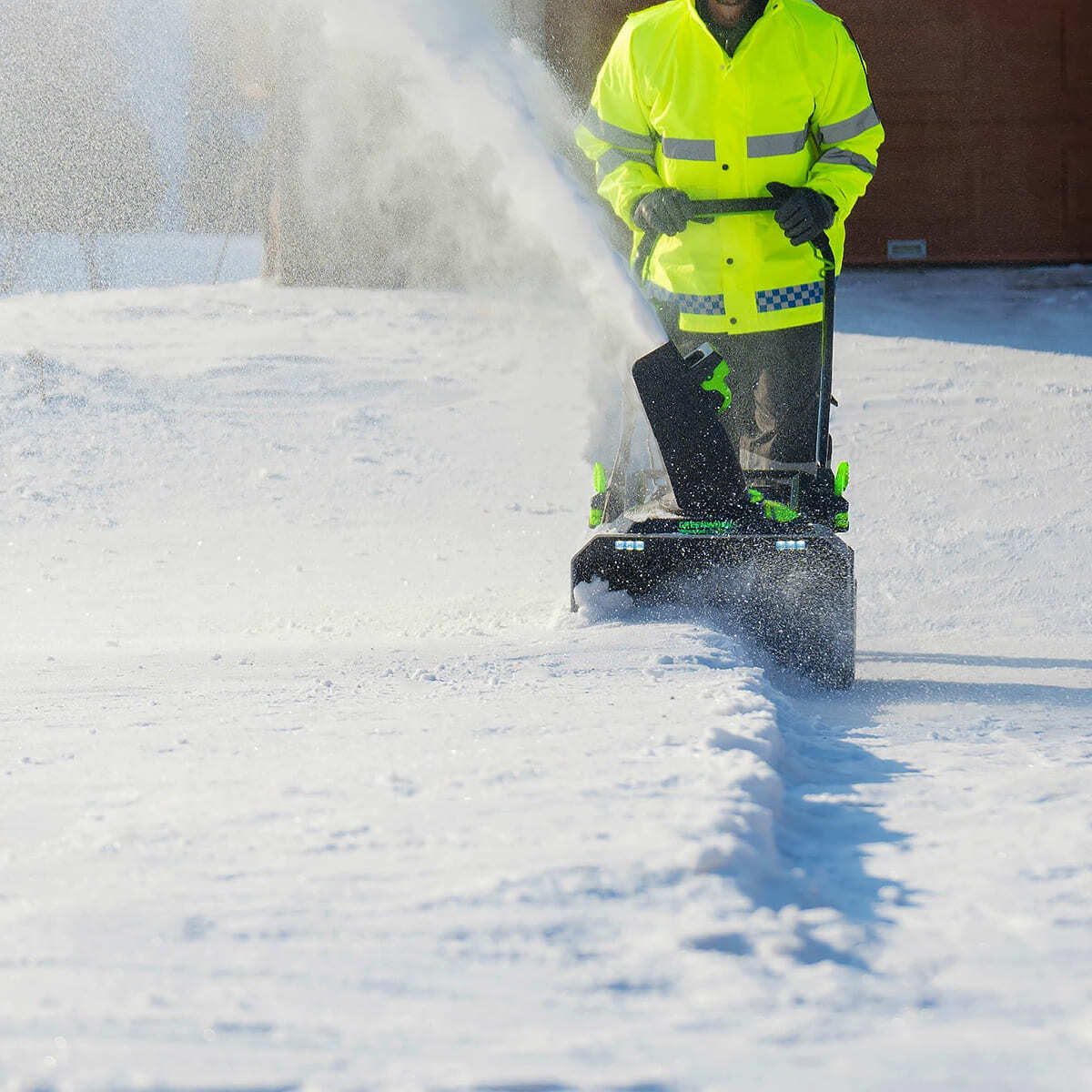 Его мощный бесщеточный двигатель (2,9 кВт / 3,9 л.с.) и скорость вращения шнека до 2400 об/мин позволяют работать быстрее и отбрасывать снег на расстояние до 12 метров.