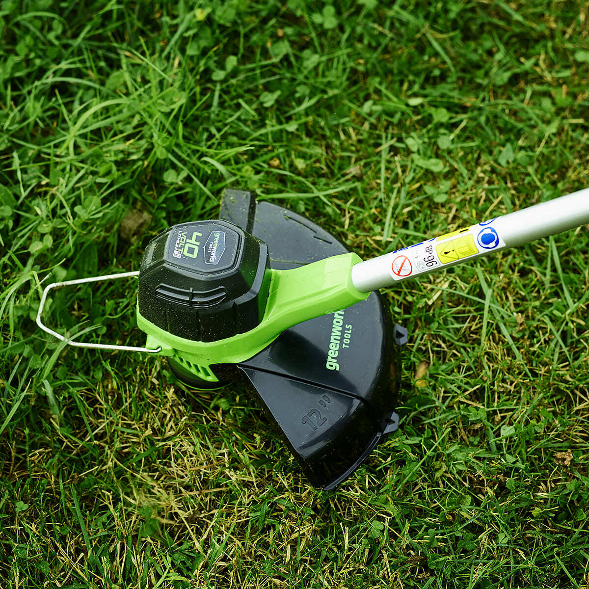 Лёгкая алюминиевая штанга из двух секций делает триммер удобным в транспортировке и хранении.