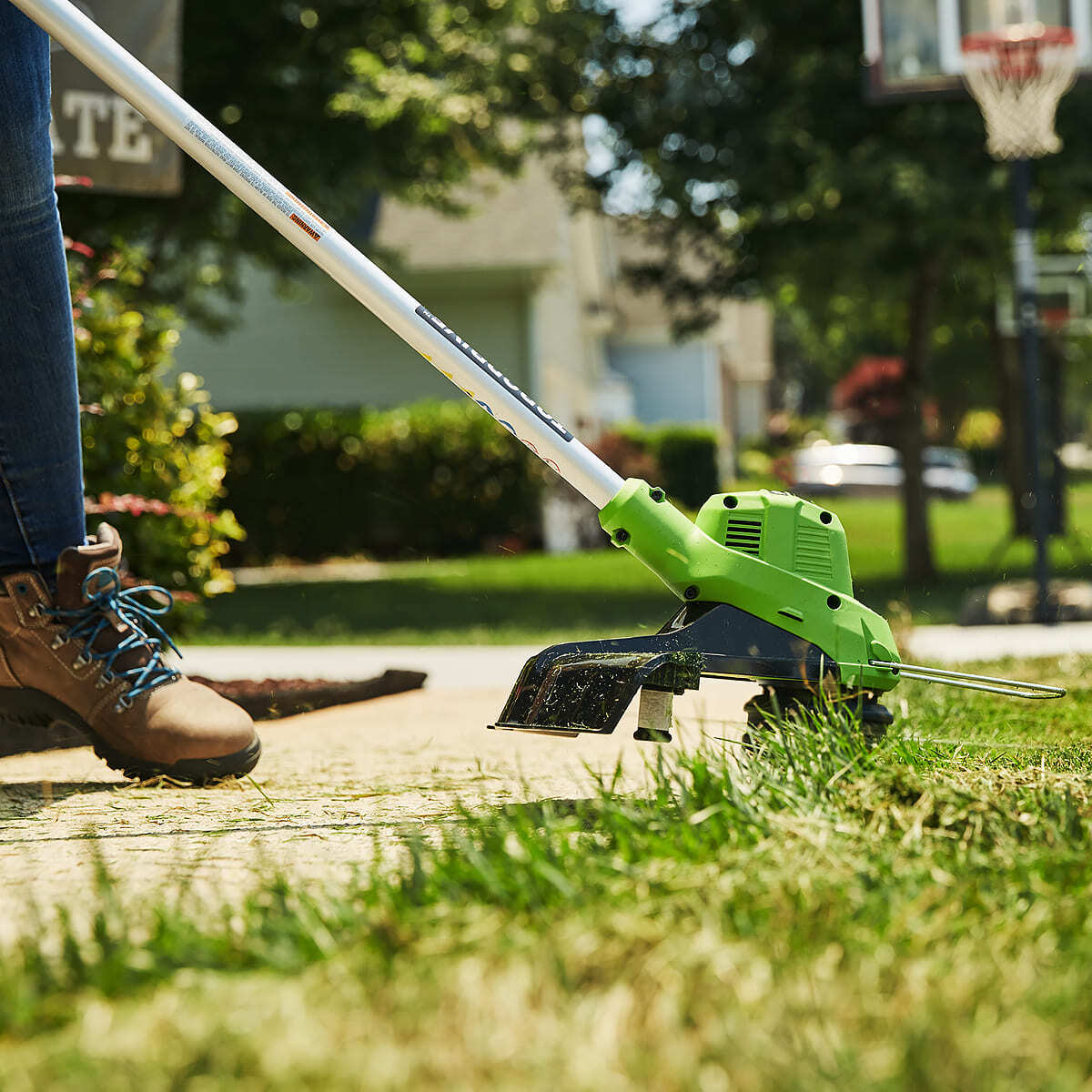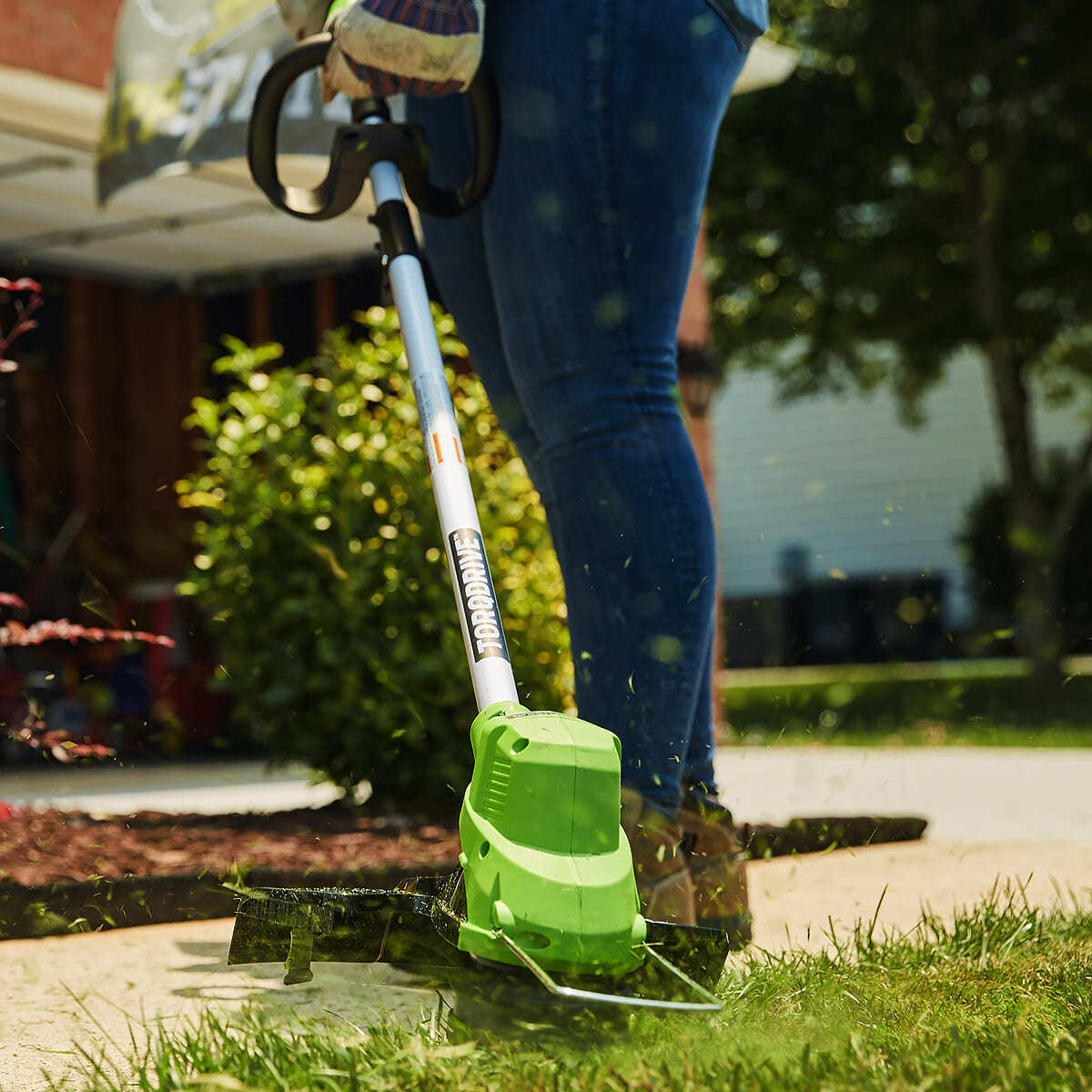 Для оптимальной настройки просто переставьте нож для подрезки лески на защитном ограждении (в базовой комплектации триммер настроен на 33 см).