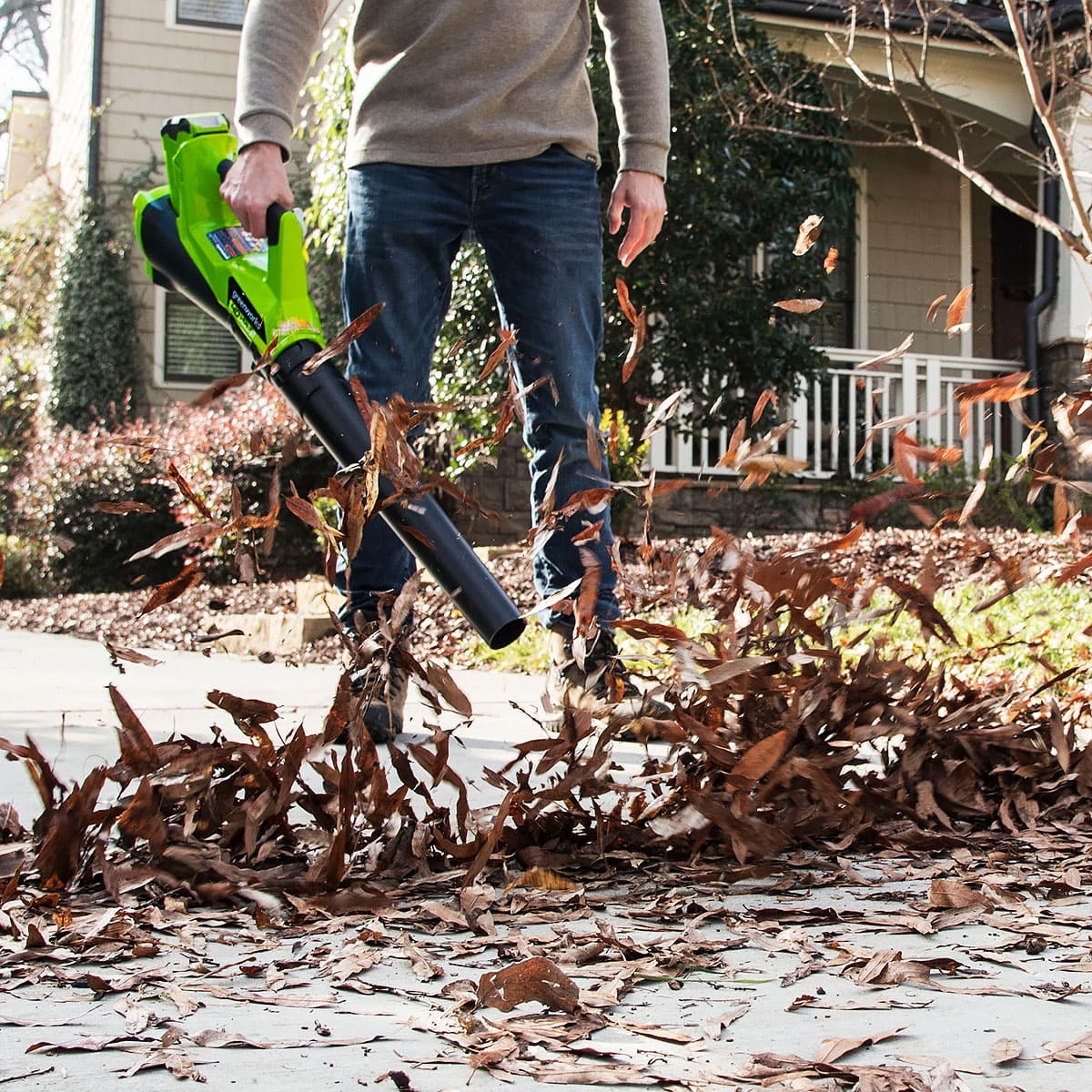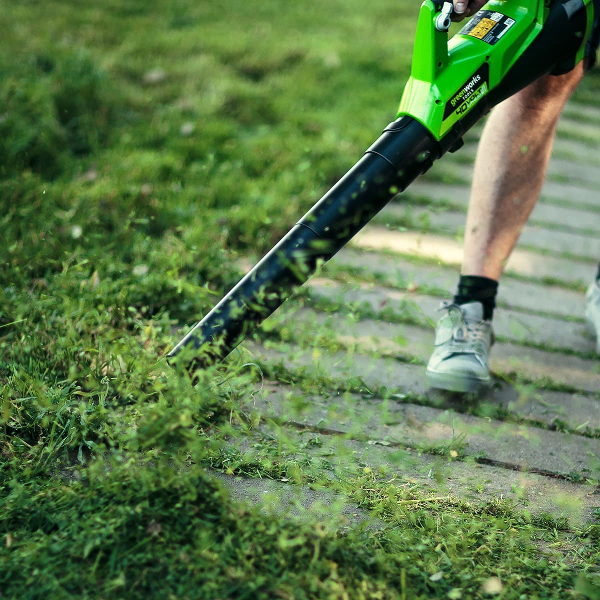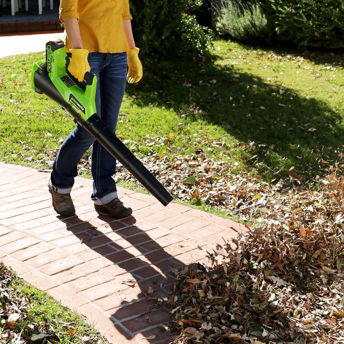 Плавная регулировка скорости с фиксацией курка позволяет точно настроить интенсивность воздушного потока под разные задачи: от легкого сдувания листьев до уборки плотного мусора.