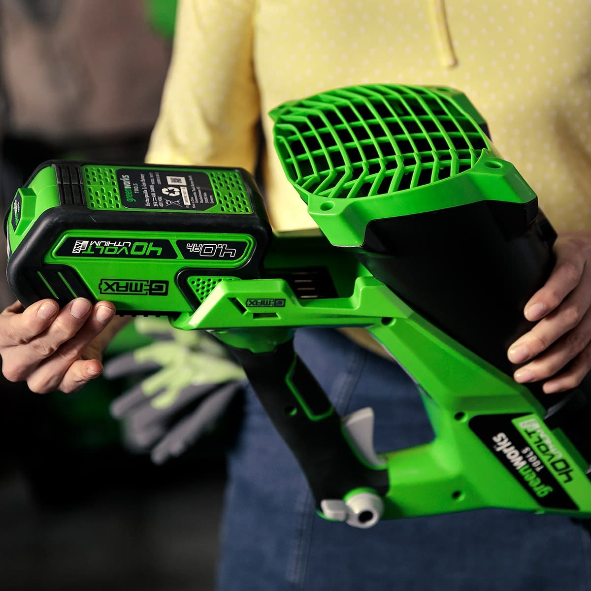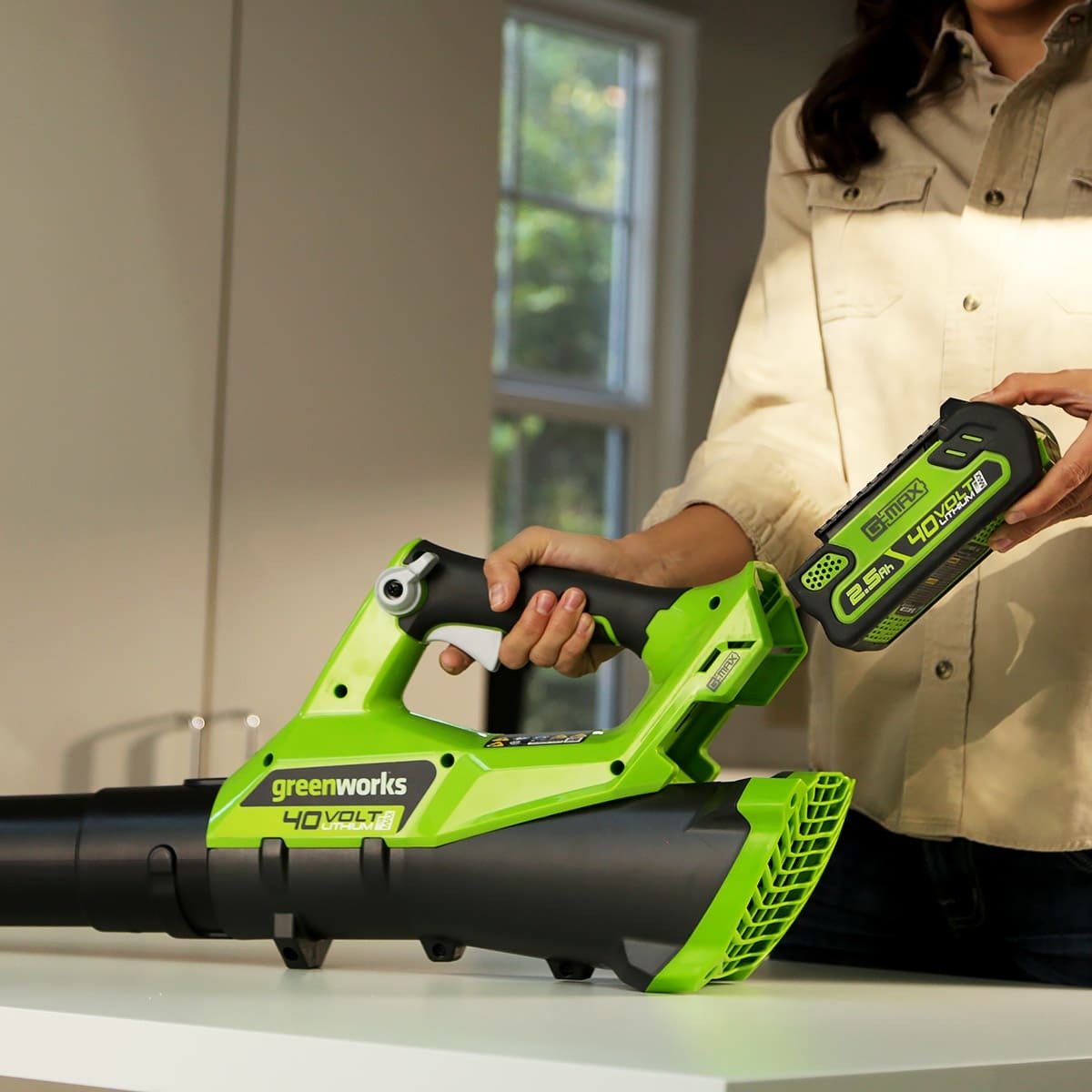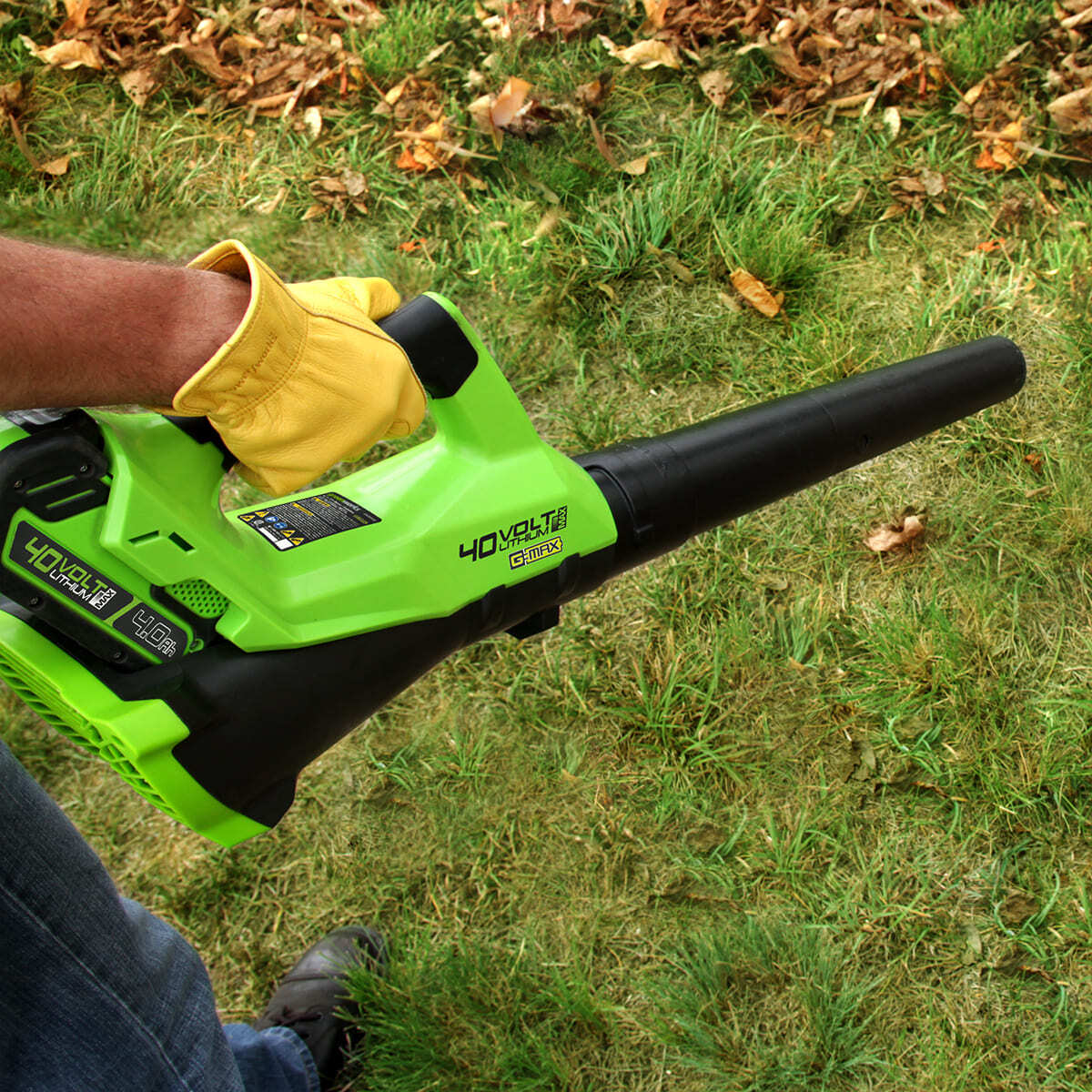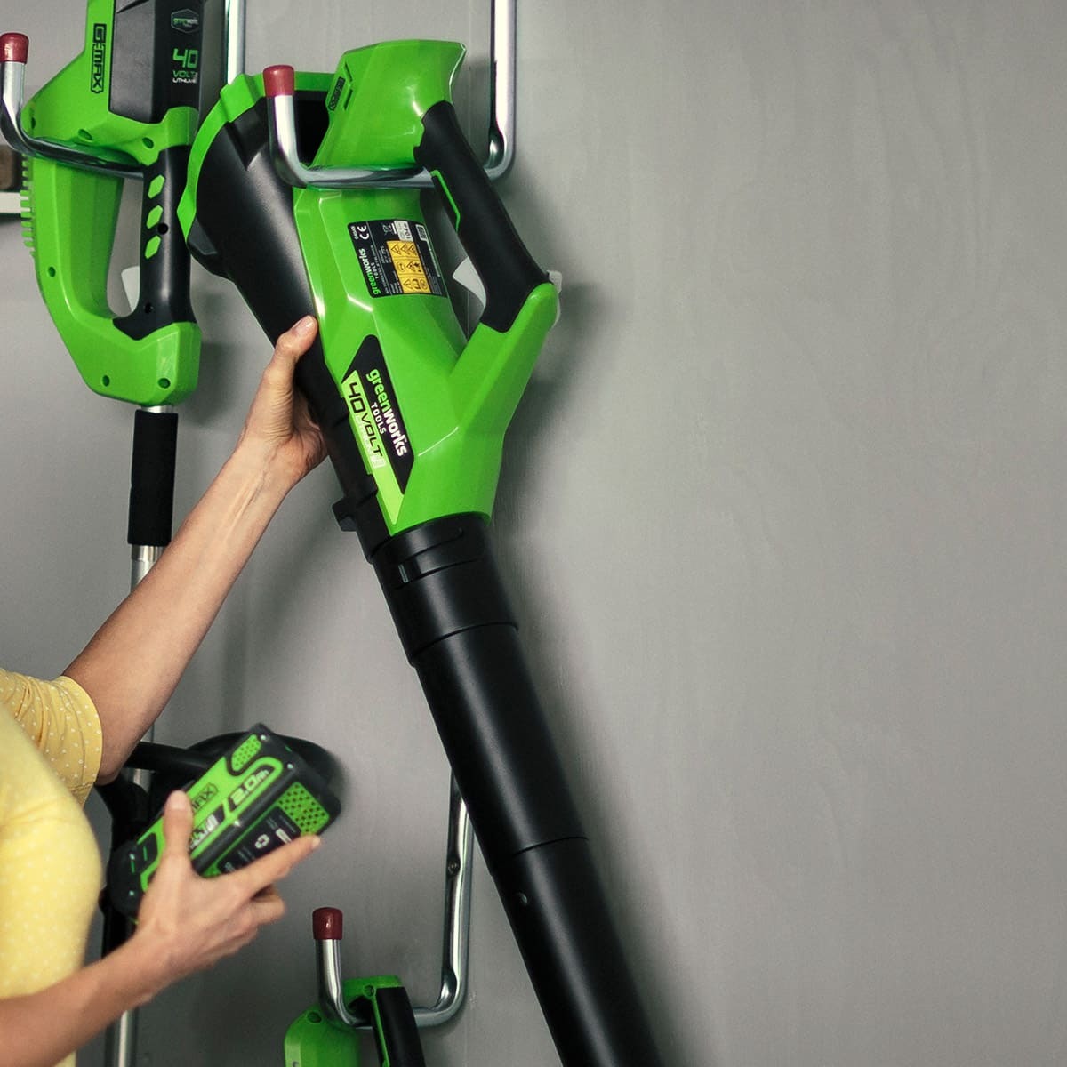 Плавная регулировка скорости с фиксацией курка позволяет точно настроить интенсивность воздушного потока под разные задачи: от легкого сдувания листьев до уборки плотного мусора.